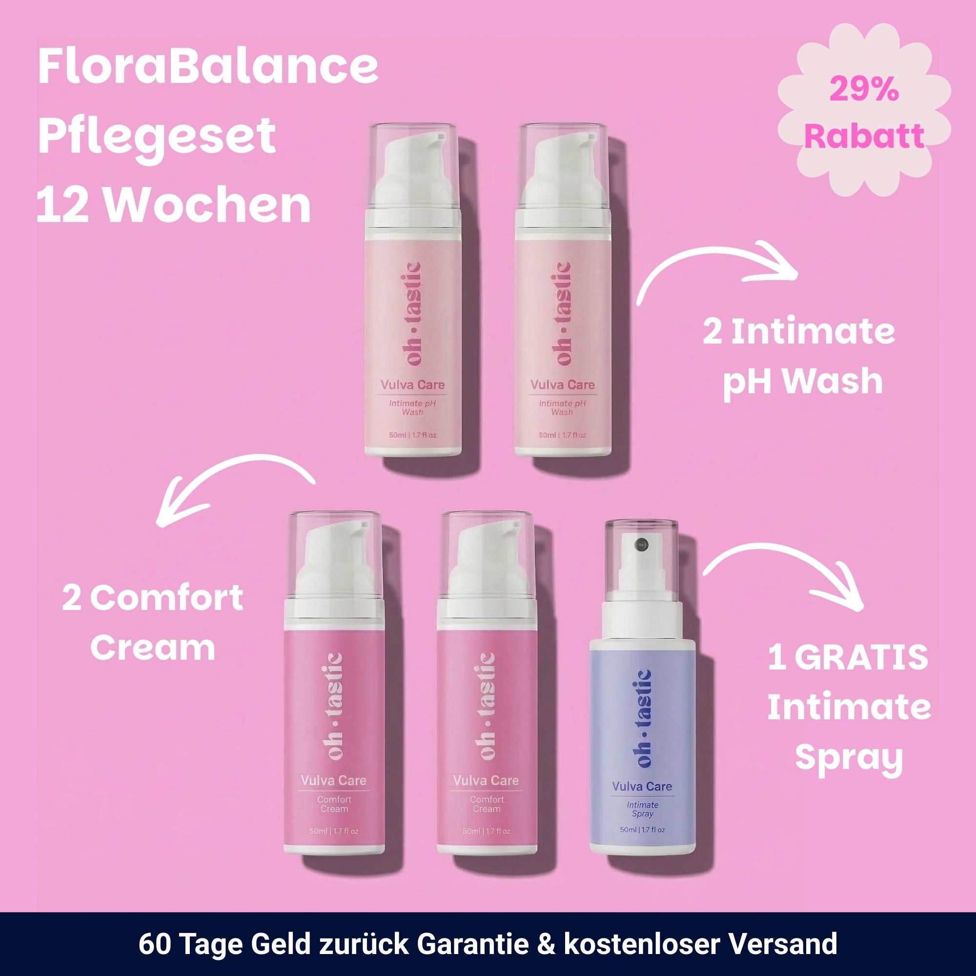 Alle Formulierungen sind ph-Wert angepasst und enthalten Pro- & Präbiotika um deine Intimflora wieder aufzubauen und deinen natürlichen Schutzschild wiederherzustellen.